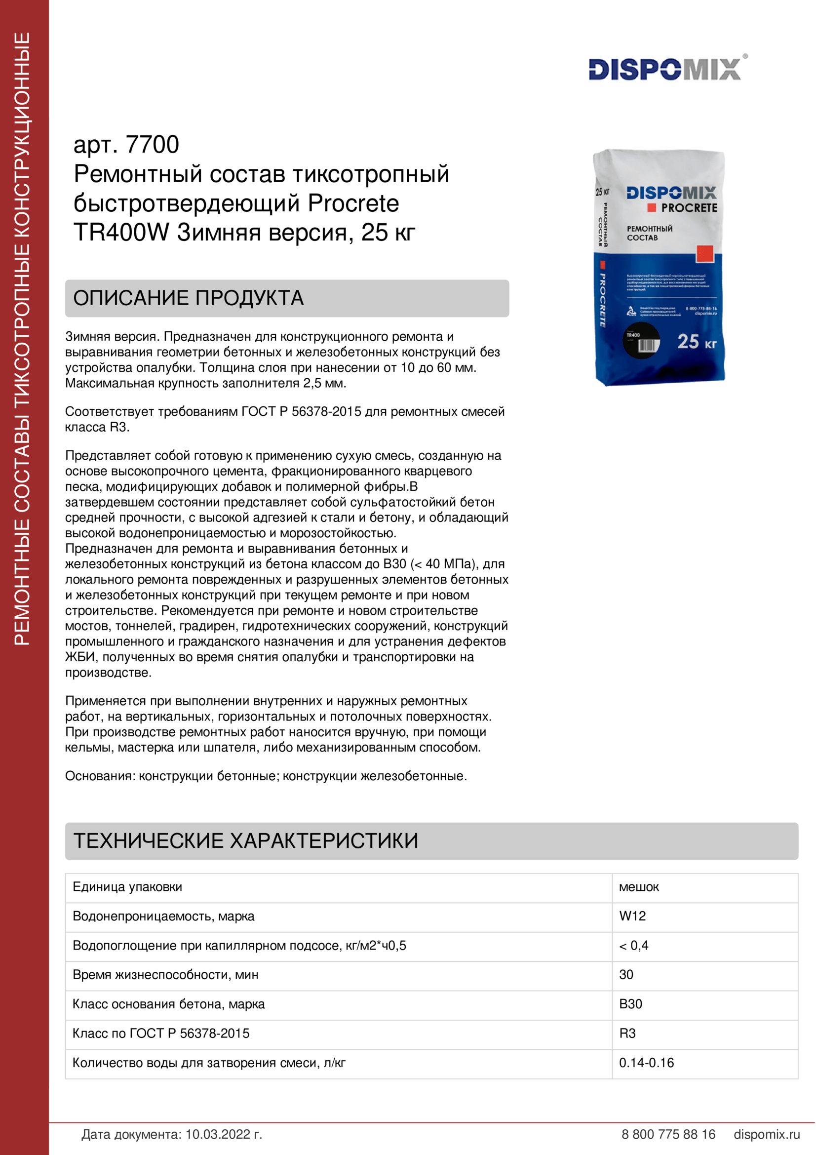 Соответствует требованиям ГОСТ Р 56378-2015 для ремонтных смесей класса R3.